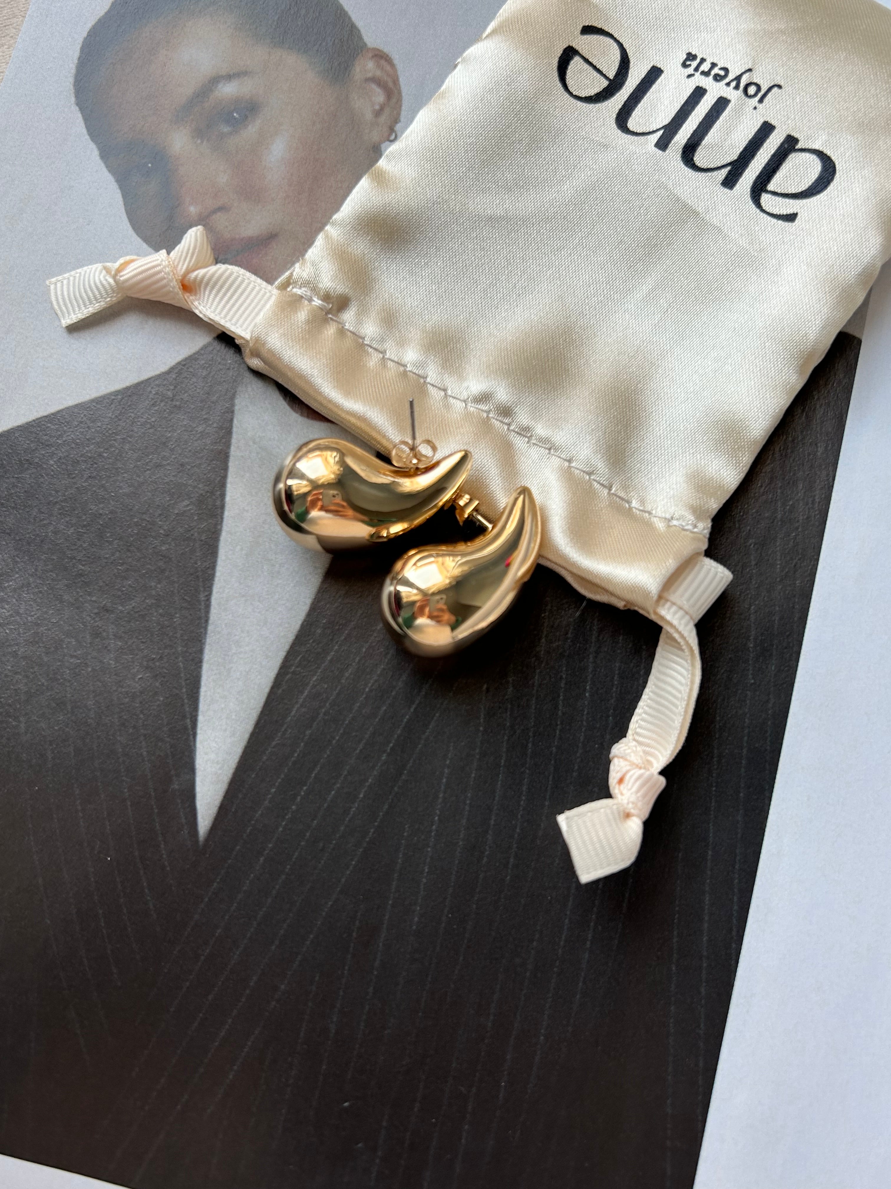 Pendientes en forma gota de acero inoxidable bañados en oro