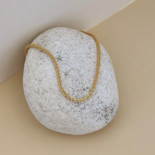 Collar tipo cordón de acero inoxidable bañado en oro