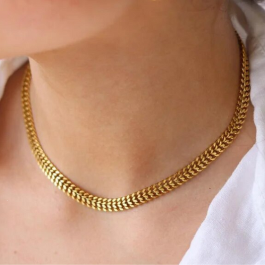 Collar tipo espiga de acero inoxidable bañado en oro