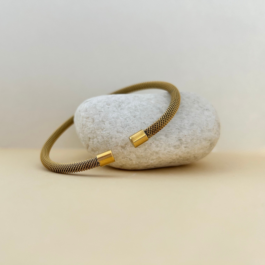 Pulsera rígida fina de acero inoxidable bañado en oro