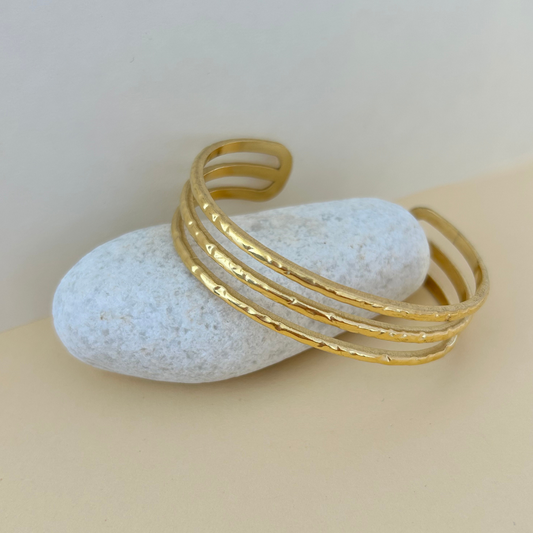 Pulsera rígida triple de acero inoxidable bañado en oro